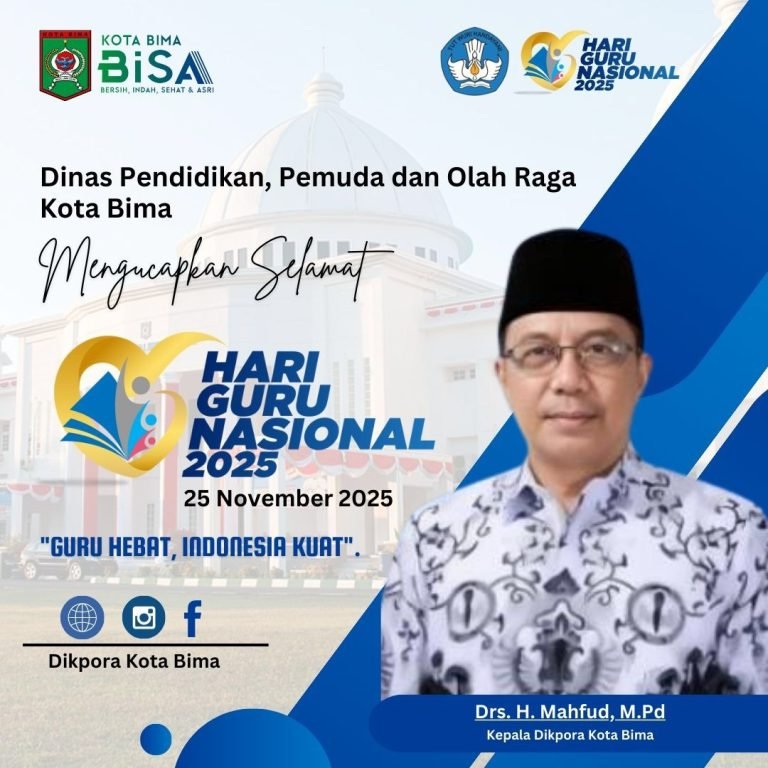 Kepala Dinas Dikpora Kota Bima Beserta Jajaran Mungucapkan Selamat Hari Guru Nasional admin01/12/202534 views Pos terkaitPemkab Dompu : Selamat Hari Ulang Tahun ke-67 Provinsi Nusa Tenggara BaratKapolda NTB Mengucapkan Selamat HUT ke 67 NTBInspektur Inspektorat Kota Bima Beserta Jajarannya Mengucapkan Selamat HUT RI Ke-80 TahunInspektur Inspektorat Kota Bima Beserta Jajarannya Mengucapkan Selamat HUT RI Ke-80 TahunCamat Asakota Kota Bima Beserta Seluruh Jajaran Mengucapkan Selamat HUT RI Ke-80 TahunRektor dan Civitas Akademika UNSWA Mengucapkan Selamat HARDIKNAS 2025