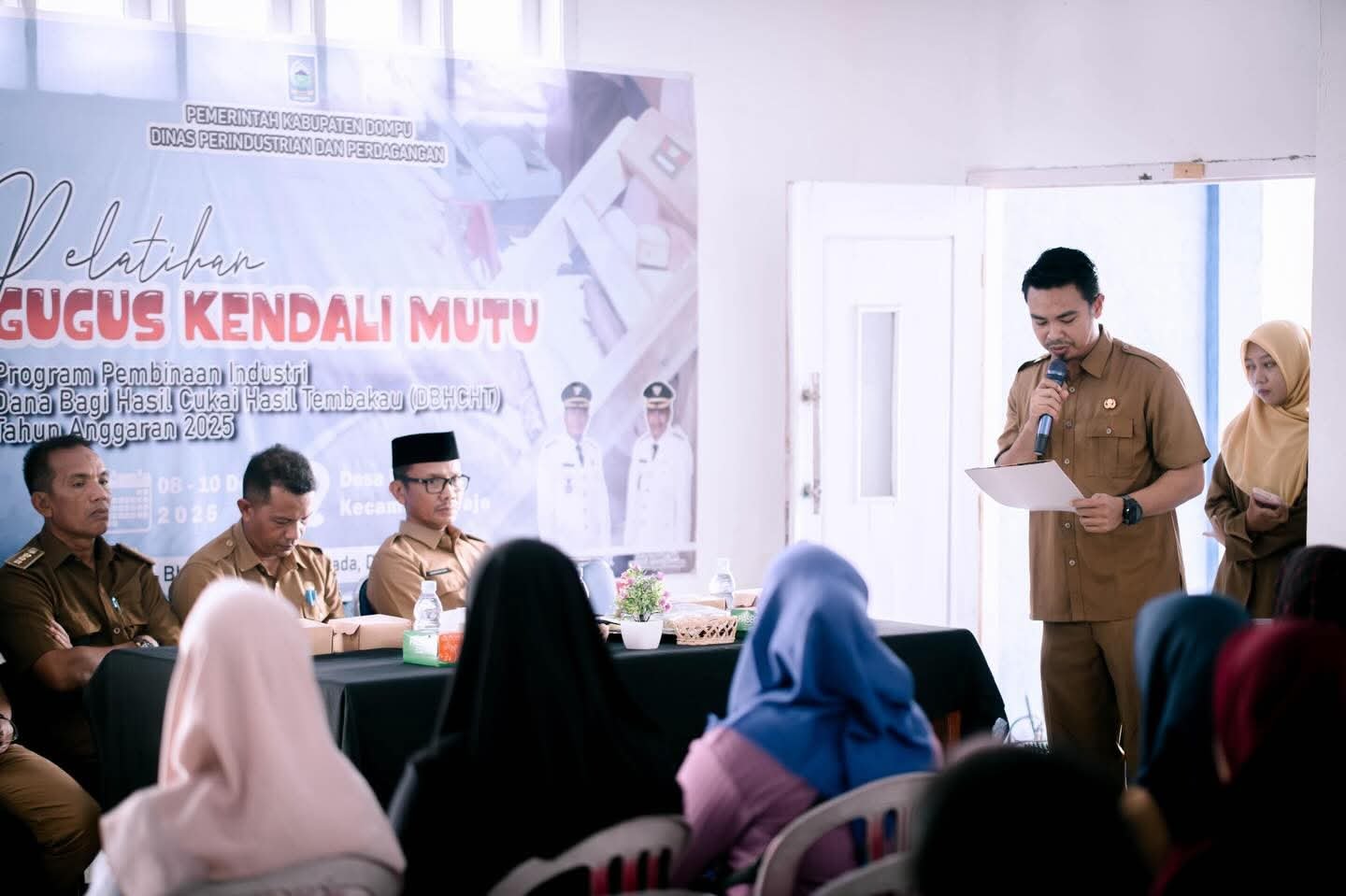 Dompu, Salampena News –Pemerintah Kabupaten Dompu melalui Dinas Perindustrian dan Perdagangan kembali menunjukkan komitmennya dalam meningkatkan kualitas industri lokal dengan menggelar Pelatihan Gugus Kendali Mutu (GKM) bagi para pekerja rumah produksi rokok Sigaret Kretek Tangan (SKT) di Desa Woko, Kecamatan Pajo.