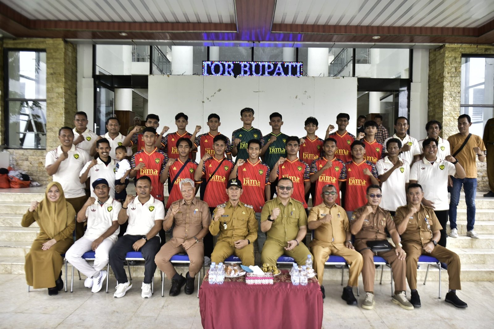 Bima, Salam Pena News – Wakil Bupati Bima dr.H. Irfan Zubaidy didampingi Sekretaris Daerah Adel Linggi Ardi, SE, Staf Ahli Bupati Bidang Politik, Hukum dan Pemerintahan Afifudin, SE.,MM Asisten Bidang Pemerintahan dan Kesejahteraan Rakyat Fatahullah, S.Pd, Asisten Perekonomian dan Pembangunan Drs. Agus Salim M.Si dan Asisten Administrasi Umum mum Drs. Aris Gunawan, M.Si secara resmi melepas Tim Persatuan Sepak Bola Bima (Persebi). Bima, 13 Januari 2026
