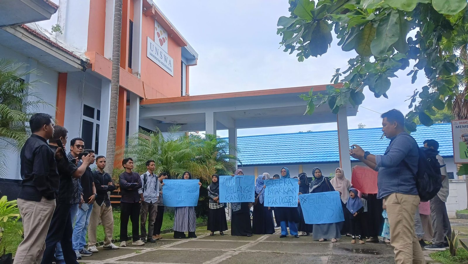 Koordinator Aliansi Dosen UNSWA, Israfil, M.Si menyatakan bahwa aksi ini merupakan langkah terakhir setelah berbagai upaya dialog dengan pihak universitas tidak membuahkan hasil. “Kita telah berulang kali menyampaikan secara internal, baik dalam rapat maupun lewat Petisi Dosen, namun hingga saat ini belum ada kepastian terkait pembayaran gaji. Kondisi ini tidak bisa terus dibiarkan,” ujarnya.