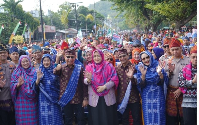 Puluhan Ribu Peserta Pawai Rimpu Mantika Kota Bima Tumpah Ruah di Jalan Raya